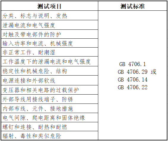 測試項目與标準