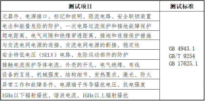 測試項目與标準
