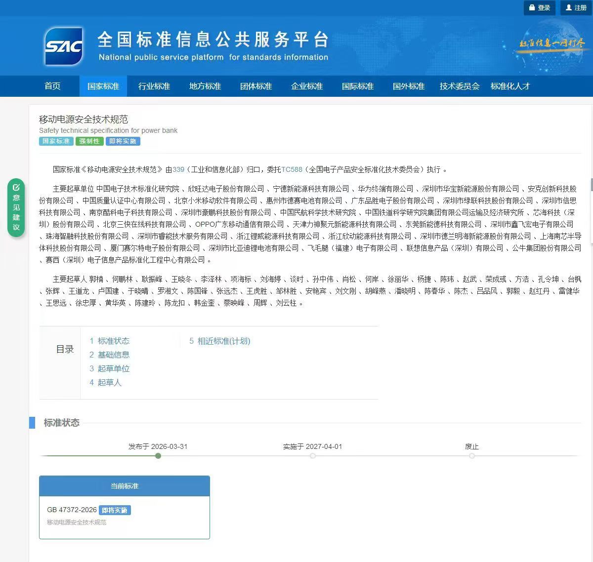 2026年3月31日,我國首部《移動電源安全技術規範》強制性國家标準(GB 47372-2026)正式發布,标志著這個年産量近3億台、占據全球80%市場份額的産業迎來前所未有的安全治理升級。這項被稱爲“史上最嚴”的充電寶新規将於2027年4月1日全面實施,其核心條款不僅覆蓋電芯、線路闆、整機三大技術領域,更通過針刺測試、智能監測等創新要求,爲行業劃定不可逾越的安全紅線。