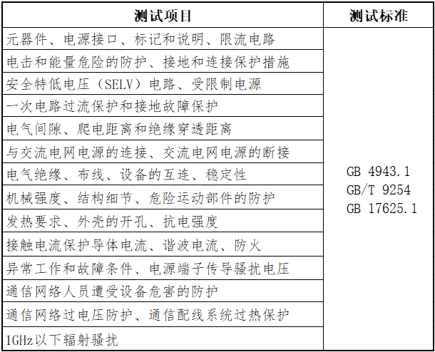 測試項目與标準