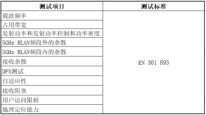 測試項目與标準