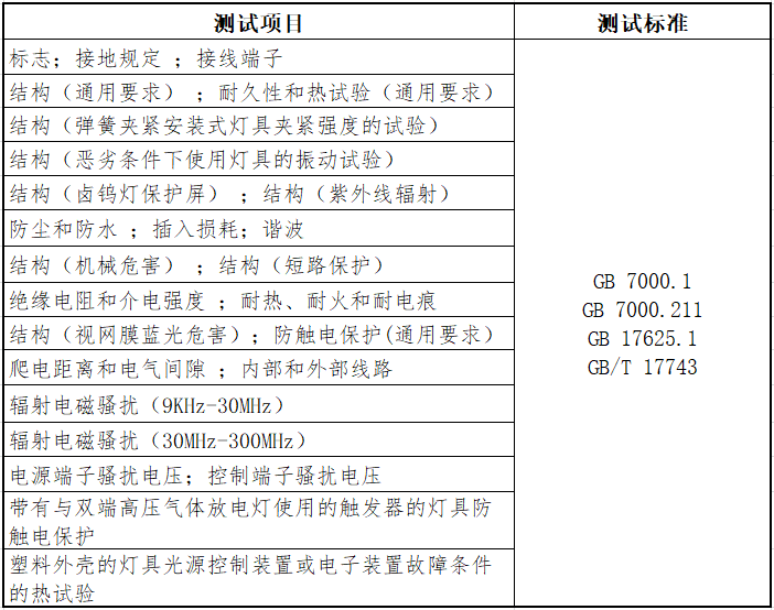 測試項目與标準